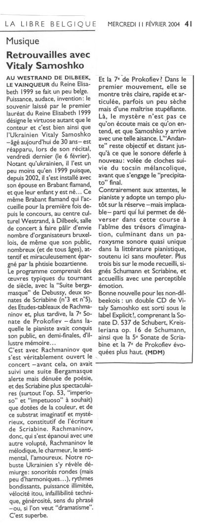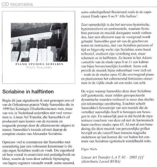 30.03.2005 – VRT – Radio 1 – “Concertgebouw (klassiek)” Presentation CD “Piano Studies Scriabin”, Vitaly Samoshko