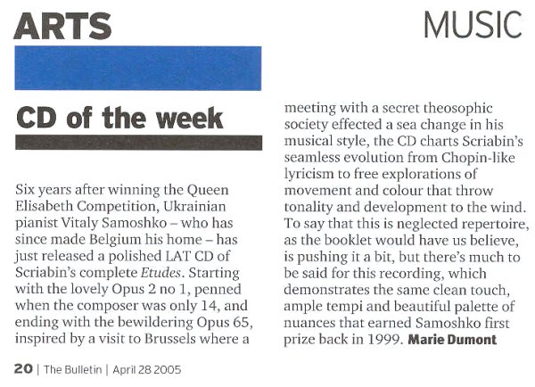 26.03.2005 – VRT – Klara – Short Presentation CD “Piano Studies Scriabin”, Vitaly Samoshko