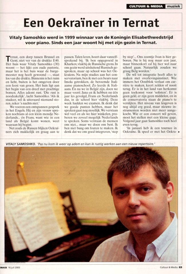 Vitaliy Samoshko hails from Kharkiv (b. 1973) – the endless spring of pianists who win piano competitions all over the world. Starting with the Special Music School and through the Kharkiv Conservatory he studied with the renowned Leonid Margarius who was a student of Regina Horowitz (Vladimir Horowitz’s sister who founded a world-renowned pianistic school in Kharkiv and whose students now turn out a whole generation of incredible pianists. Subsequently he studied with Mr. Margarius at the Academia Pianistica “Incontri col Maestro” in Italy. Since 2001 he has been living in Belgium.