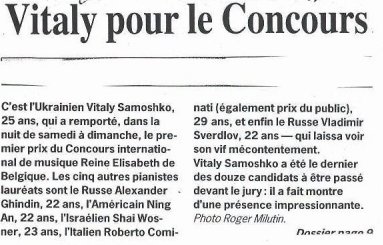 To win the prize at the Montreal Competition (highly quoted and one of the most difficult among the international music competitions), Mr. Samoshko had to perform 16 masterpieces of the piano repertoire, ranging from Bach to contemporary music and including one by a composer of his country (he performed Zolotuhin’s prelude in the “blues” style), a mandatory piece by a Canadian composer especially written for the competition that had to be learned that within one month, and two concertos.